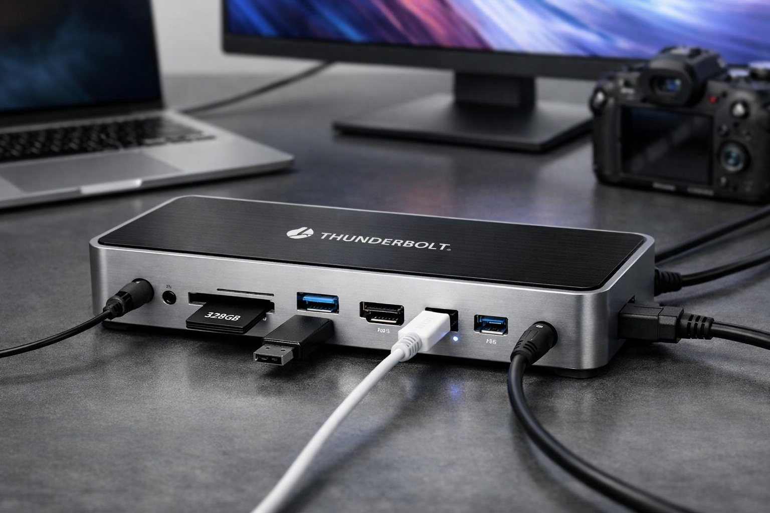 Compact USB-C dock for everyday office connectivity needs.