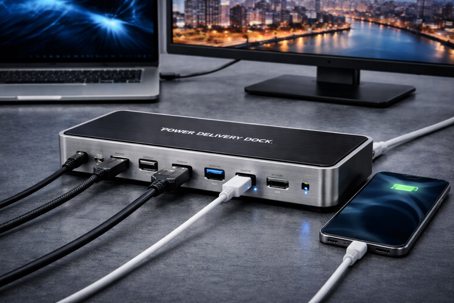 Modern USB-C dock designed for HP laptops with seamless expansion.